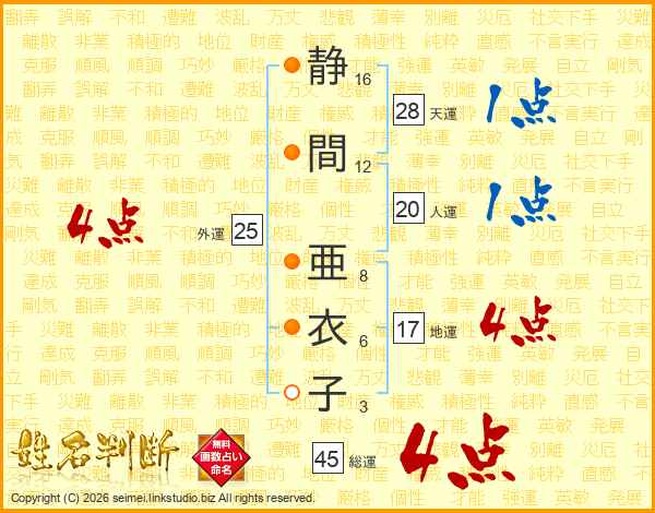 静間亜衣子さんの総運は45画の4点!