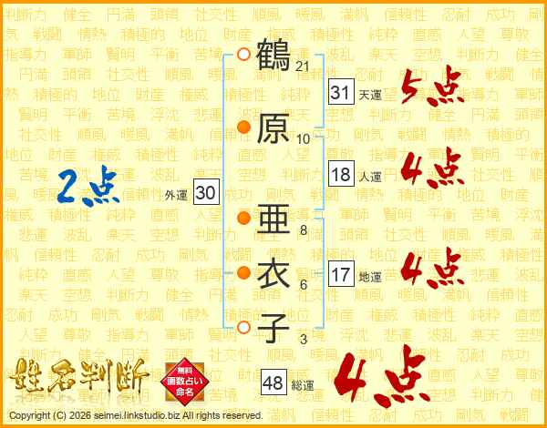 鶴原亜衣子さんの総運は48画の4点!