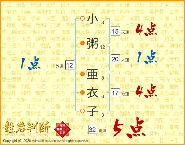 小粥亜衣子さんの総運は32画の5点!