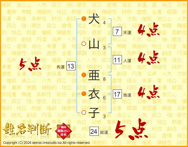 犬山亜衣子さんの外運は13画の5点!