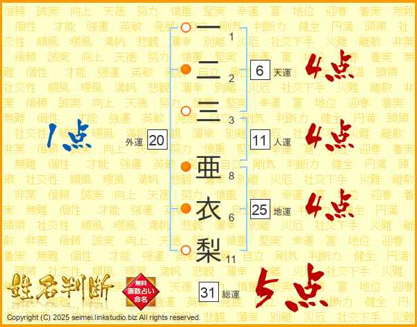 一二三亜衣梨さんの総運は31画の5点!