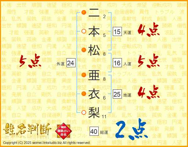 二本松亜衣梨さんの外運は24画の5点!