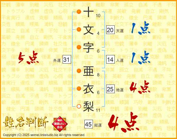 十文字亜衣梨さんの総運は45画の4点!
