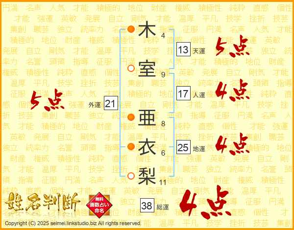 木室亜衣梨さんの総運は38画の4点!