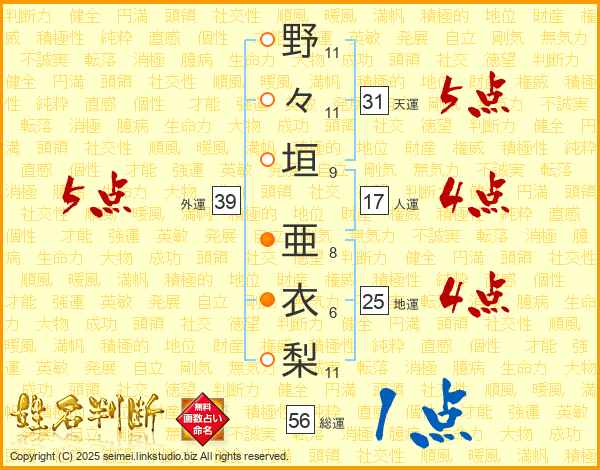 野々垣亜衣梨さんの外運は39画の5点!