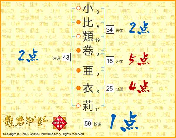小比類巻亜衣莉さんの外運は43画の2点!