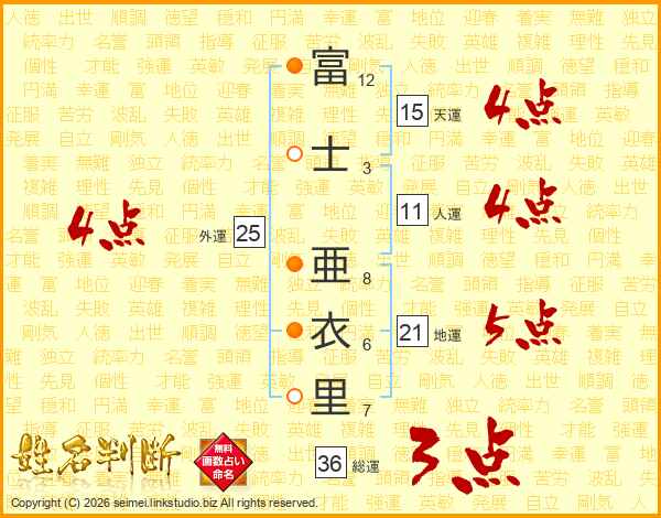 富士亜衣里さんの総運は36画の3点!