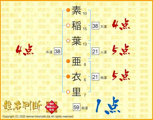 素稲葉亜衣里さんの総運は59画の1点!