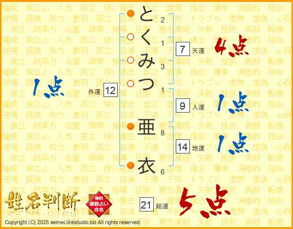 とくみつ亜衣さんの総運は21画の5点!