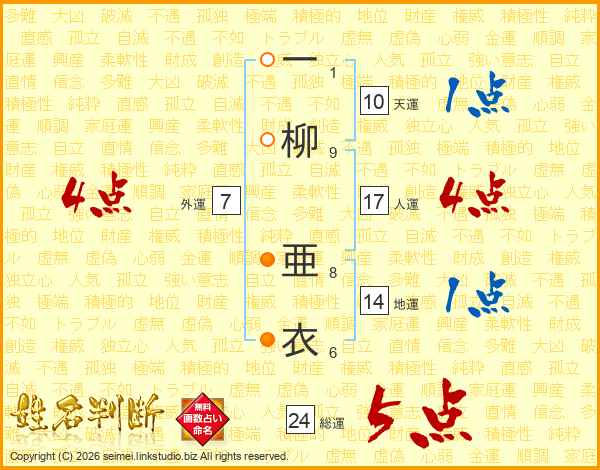 一柳亜衣さんの総運は24画の5点!