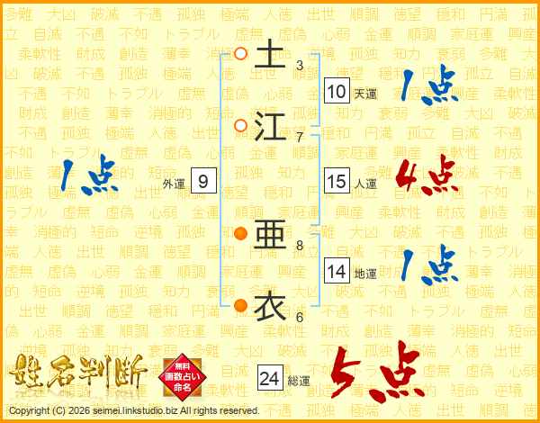 土江亜衣さんの総運は24画の5点!