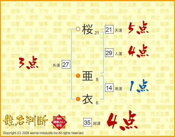 桜亜衣さんの総運は35画の4点!