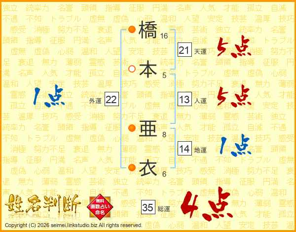 橋本亜衣さんの天運は21画の5点!