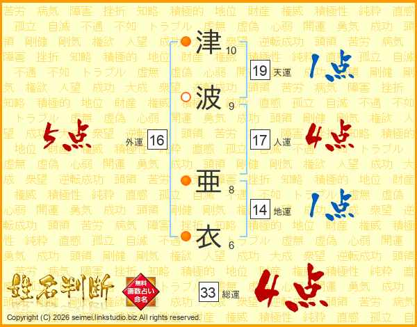 津波亜衣さんの総運は33画の4点!
