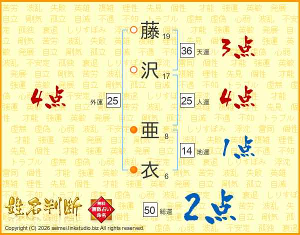 藤沢亜衣さんの天運は36画の3点!