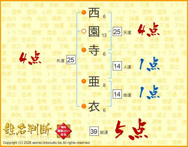 西(6画)園(13画)寺(6画) 亜(8画)衣(6画)