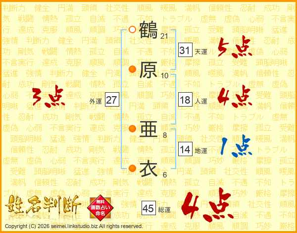 鶴原亜衣さんの総運は45画の4点!
