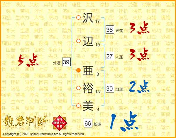 沢辺亜裕美さんの外運は39画の5点!