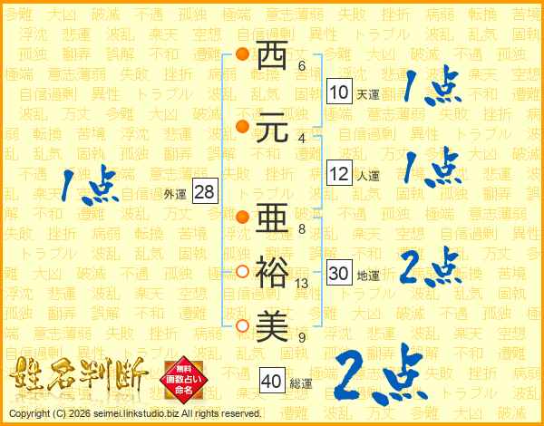 西元亜裕美さんの総運は40画の2点!