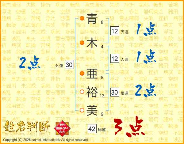 青木亜裕美さんの地運は30画の2点!
