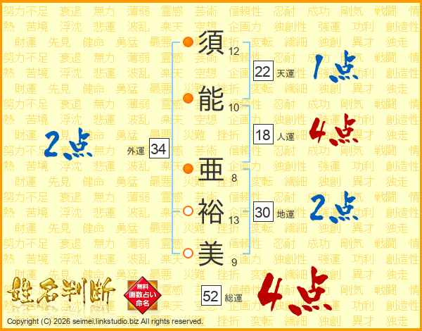 須能亜裕美さんの総運は52画の4点!