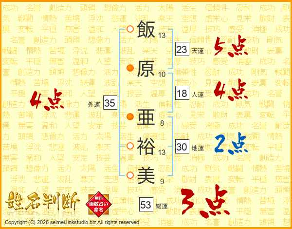 飯原亜裕美さんの総運は53画の3点!