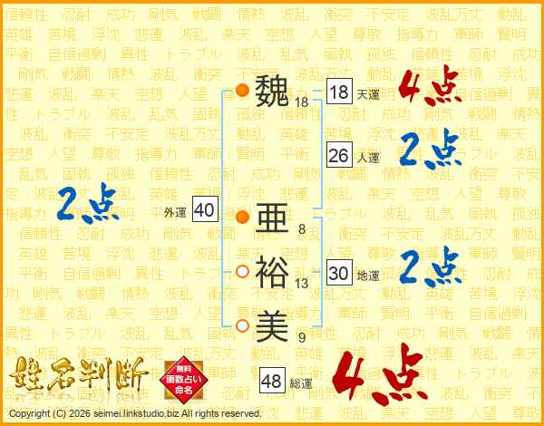 魏亜裕美さんの総運は48画の4点!