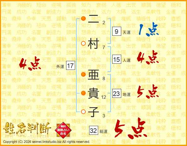 二村亜貴子さんの外運は17画の4点!