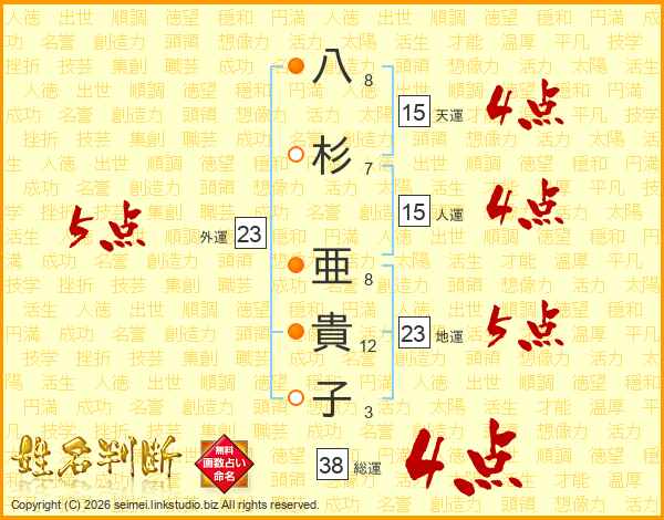 八杉亜貴子さんの総運は38画の4点!