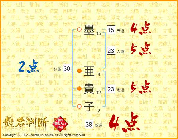 墨亜貴子さんの総運は38画の4点!