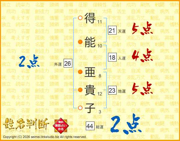 得能亜貴子さんの総運は44画の2点!