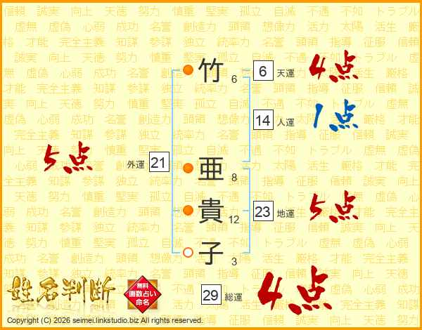 竹亜貴子さんの総運は29画の4点!