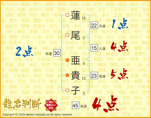 蓮尾亜貴子さんの総運は45画の4点!