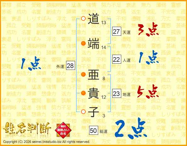 道端亜貴子さんの天運は27画の3点!