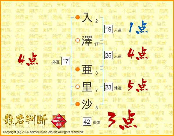 入澤亜里沙さんの総運は42画の3点!