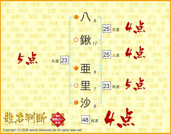 八鍬亜里沙さんの総運は48画の4点!