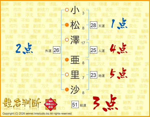 小松澤亜里沙さんの総運は51画の3点!