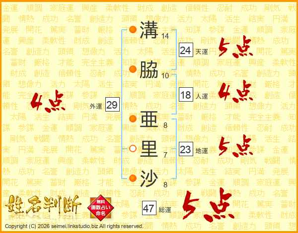 溝脇亜里沙さんの天運は24画の5点!