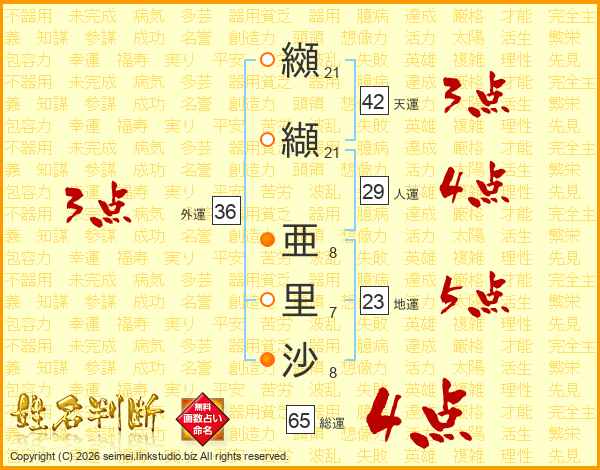 纐纈亜里沙さんの総運は65画の4点!
