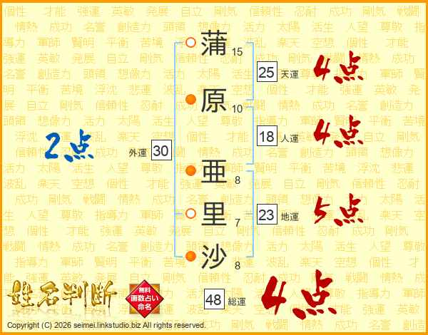 蒲原亜里沙さんの総運は48画の4点!