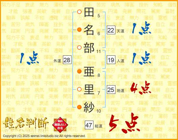 田名部亜里紗さんの総運は47画の5点!
