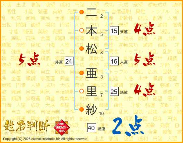 二本松亜里紗さんの総運は40画の2点!
