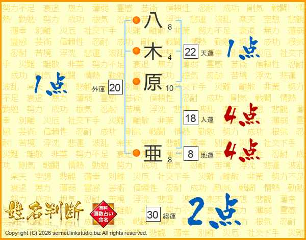 八木原亜さんの人運は18画の4点!