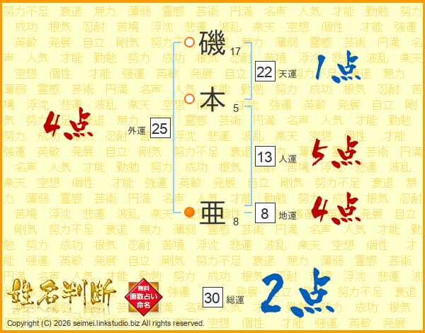 磯本亜さんの人運は13画の5点!