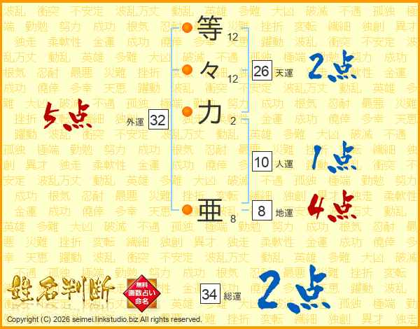 等々力亜さんの天運は26画の2点