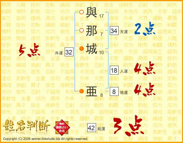 與那城亜さんの天運は34画の2点!