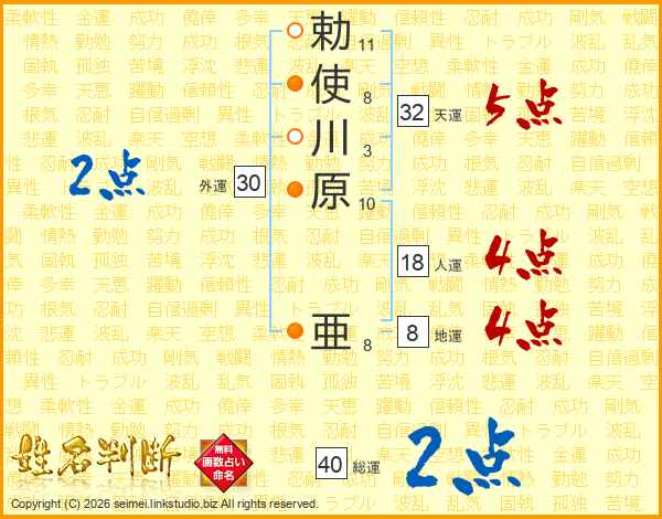 勅使川原亜さんの総運は40画の2点!