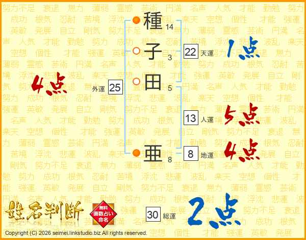 種子田亜さんの人運は13画の5点!