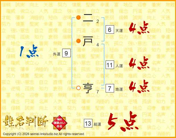 二戸亨さんの総運は13画の5点!