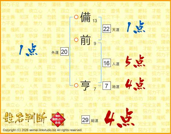 備前亨さんの総運は29画の4点!